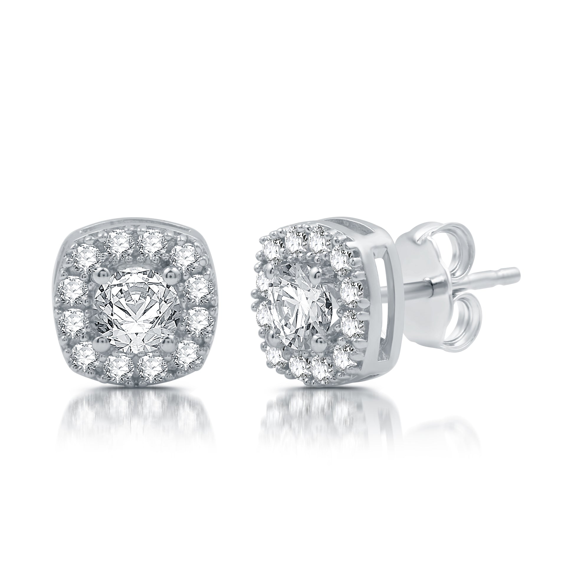1 1/10 Cttw Created White Sapphire & .925 Sterling Silver Cushion Cut Halo Earrings